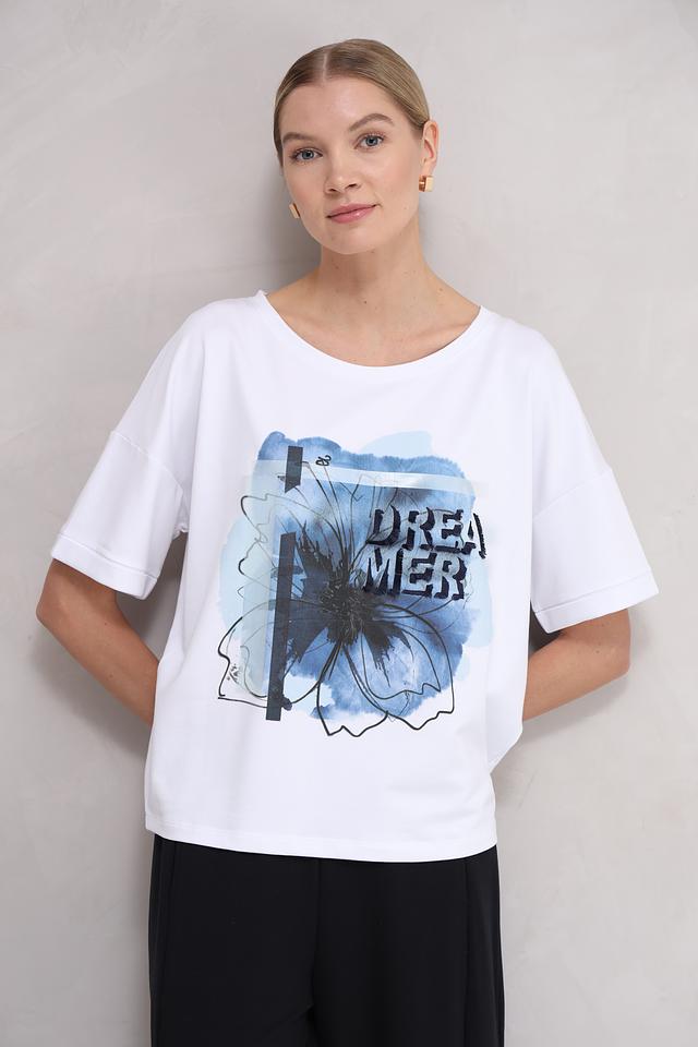 Белая футболка Margittes с ярким принтом "Dreamer" станет отличным дополнением к вашему летнему гардеробу. Изготовлена из мягкого и приятного к телу модала с добавлением хлопка и эластана, обеспечивающих комфорт и свободу движений. Состав: модал 49%, хлопок 48%, эластан 3%