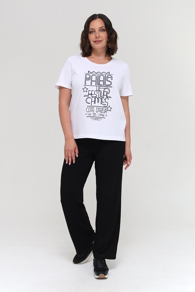 Особенностью данной модели является стильный принт, вдохновленный атмосферой Каннского кинофестиваля. Четкий графический рисунок придает футболке оригинальность и индивидуальность.