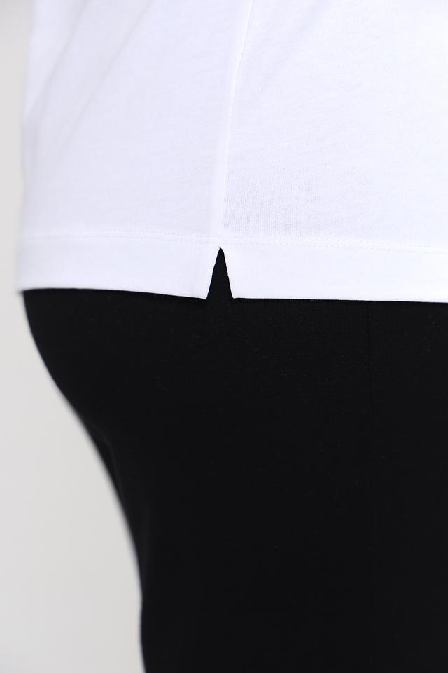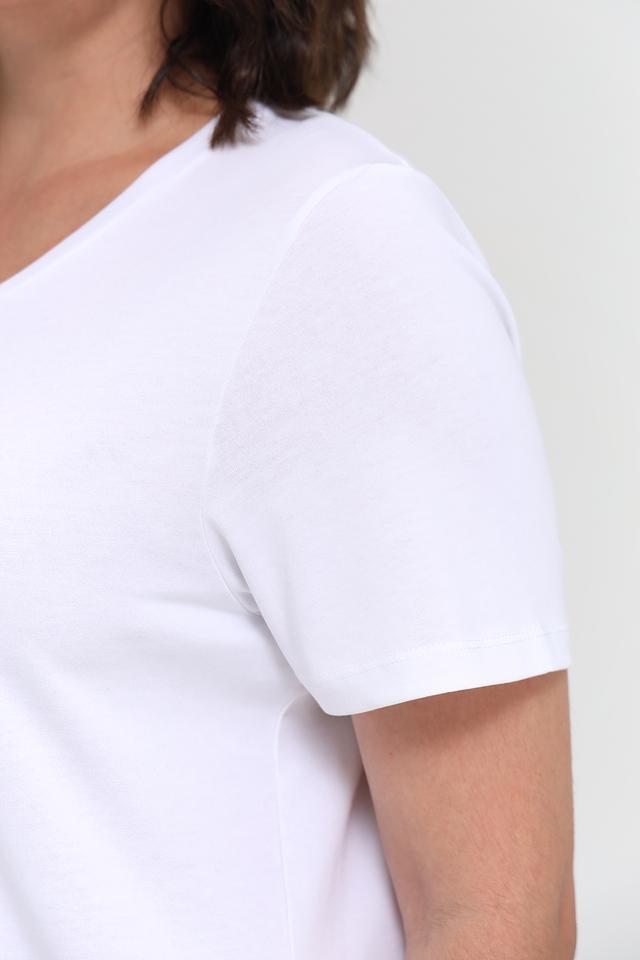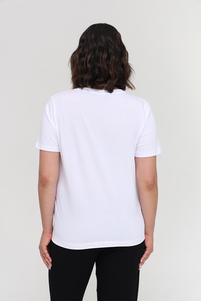 Футболка имеет классический прямой крой, который подходит для любой фигуры. Короткие рукава и круглый вырез горловины обеспечивают свободу движений и комфорт в жаркую погоду. Эта футболка идеально сочетается с джинсами, шортами или юбками, создавая непринужденный и стильный образ.