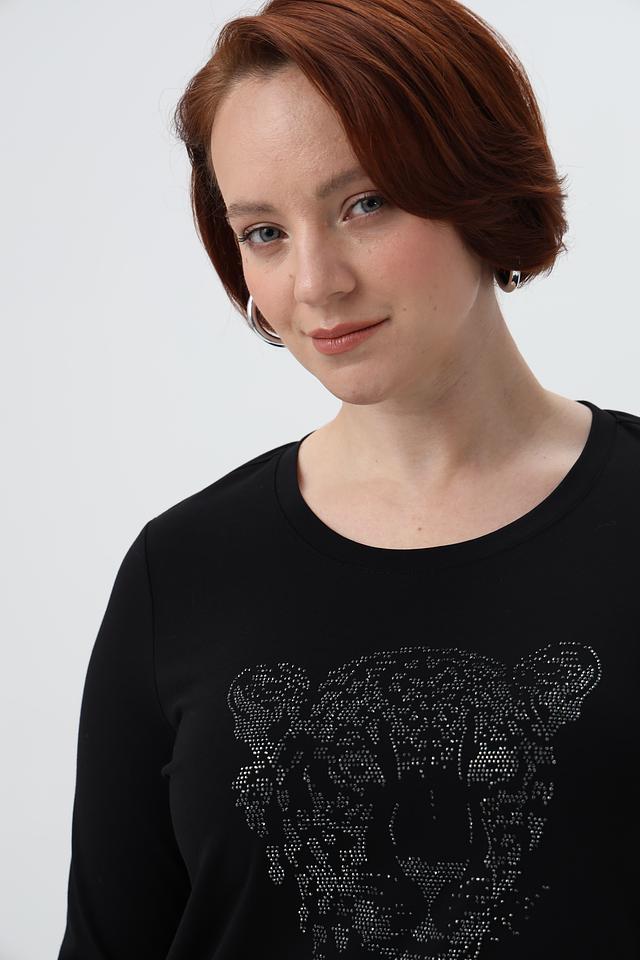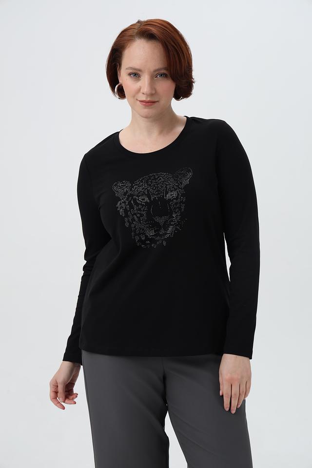 Чёрный лонгслив от Margittes с эффектным принтом в виде тигра. Изготовлен из мягкого хлопка с добавлением эластана для комфорта и отличной посадки. Идеально подходит для создания стильных повседневных образов. Состав: хлопок 92%, эластан 8%