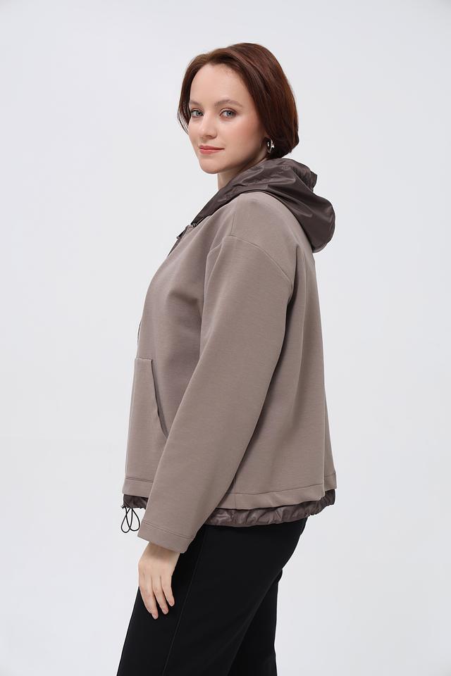 Жакет имеет застежку-молнию, капюшон и удобные карманы. Крой свободный, что обеспечивает комфорт в носке. Подкладка капюшона выполнена из плащевой ткани.