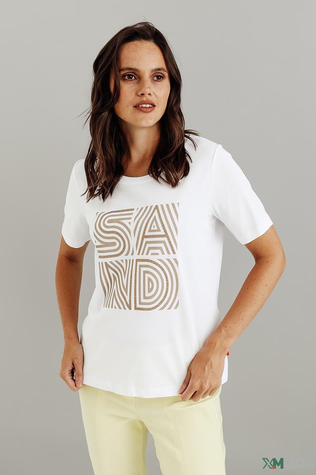 Эта стильная футболка от Margittes выполнена в белом цвете и украшена эффектным принтом "SAND", выполненным в коричневых тонах. Футболка имеет прямой крой и короткие рукава, что делает ее идеальным выбором для повседневной носки.