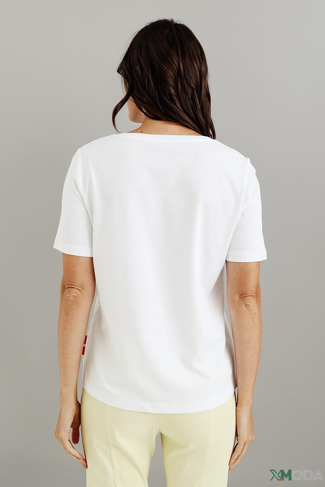 Футболка прекрасно сочетается с джинсами, шортами, юбками и брюками. Ее можно носить как самостоятельно, так и под жакет или кардиган. Это универсальный предмет гардероба, который подойдет для создания различных образов.