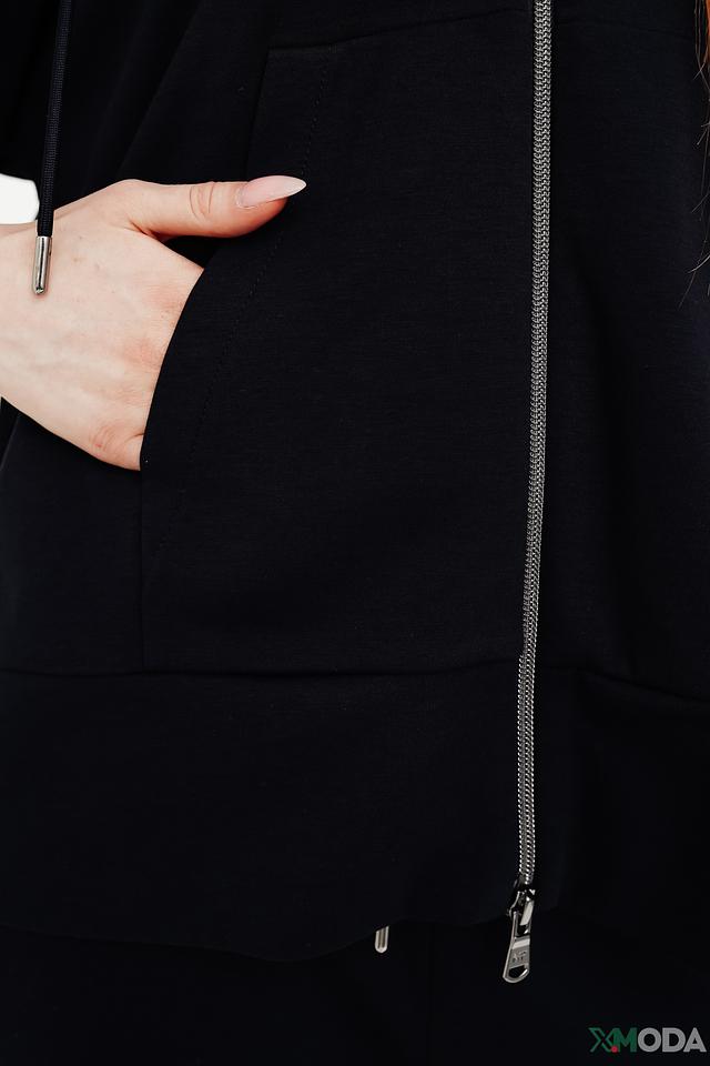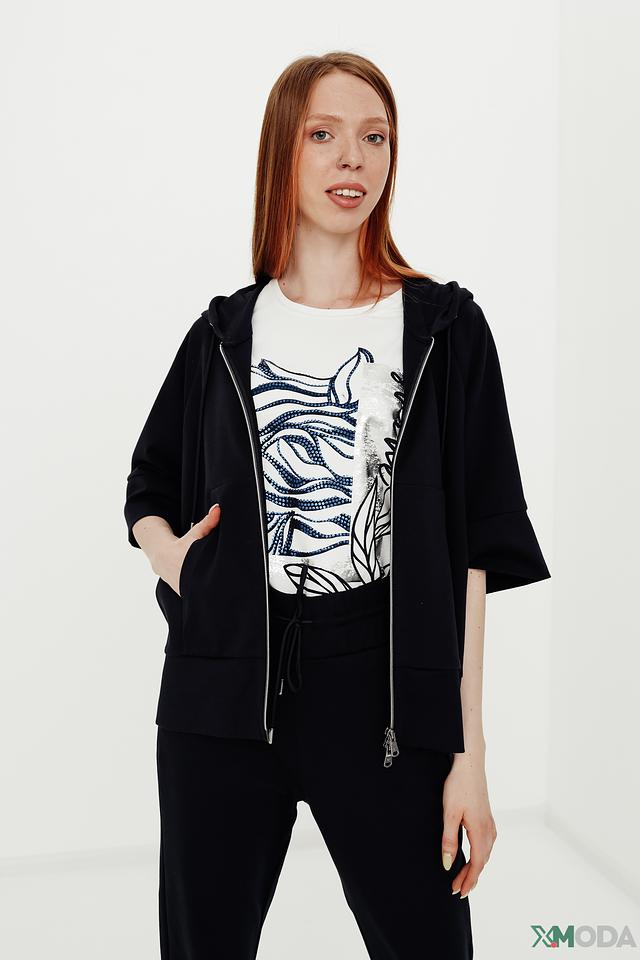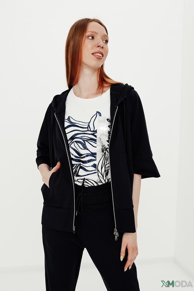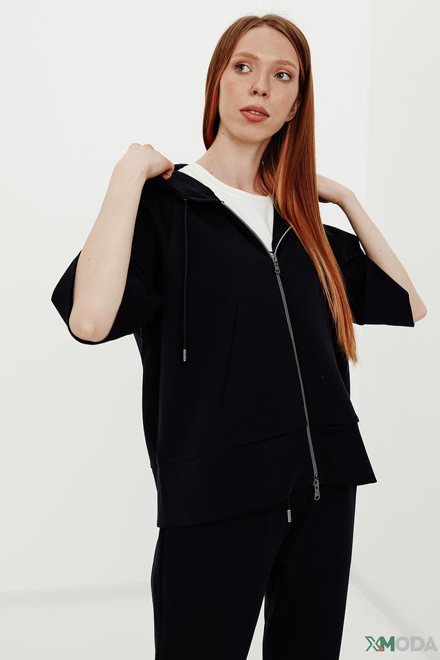 Толстовка имеет удобную застёжку-молнию, капюшон и укороченный рукав. Благодаря лаконичному дизайну, толстовку легко сочетать с различными элементами гардероба – джинсами, брюками или юбками.