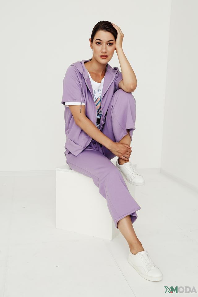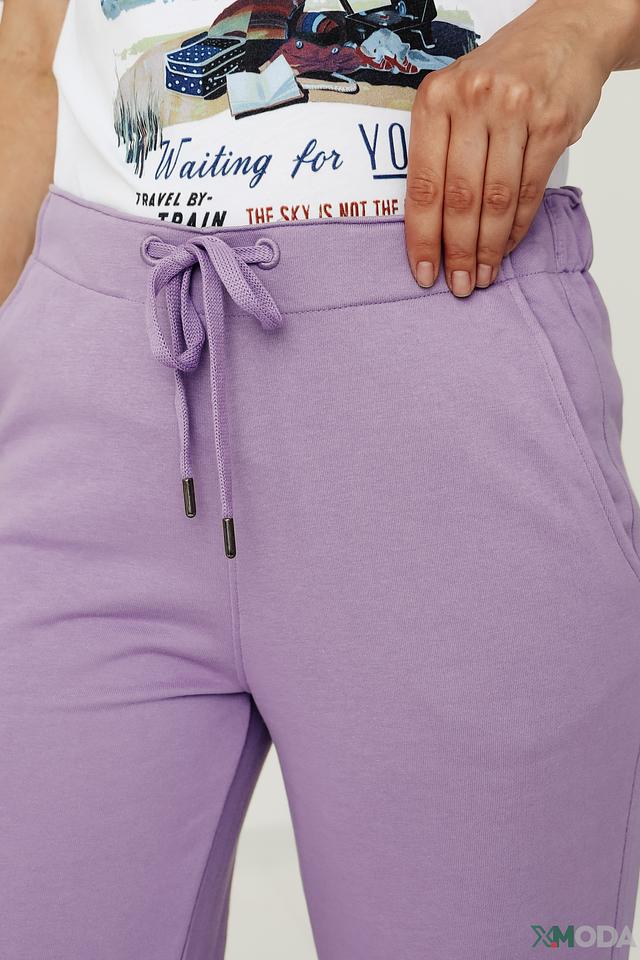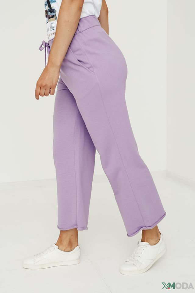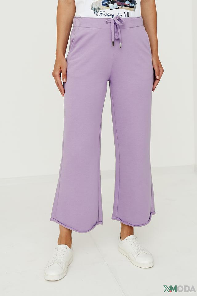 Брюки имеют лавандовый цвет, который легко сочетается с различными элементами одежды. Эластичный пояс дополнен кулиской, что позволяет регулировать посадку по фигуре. Удобный крой не сковывает движений, делая эти брюки идеальными для повседневной носки.