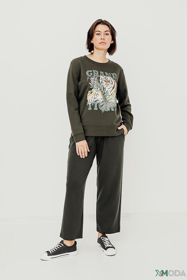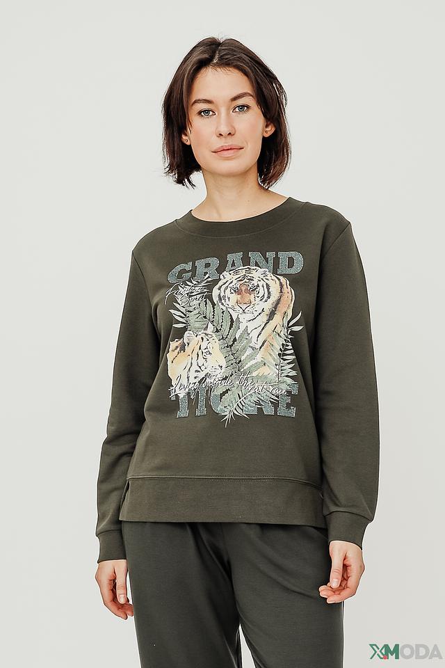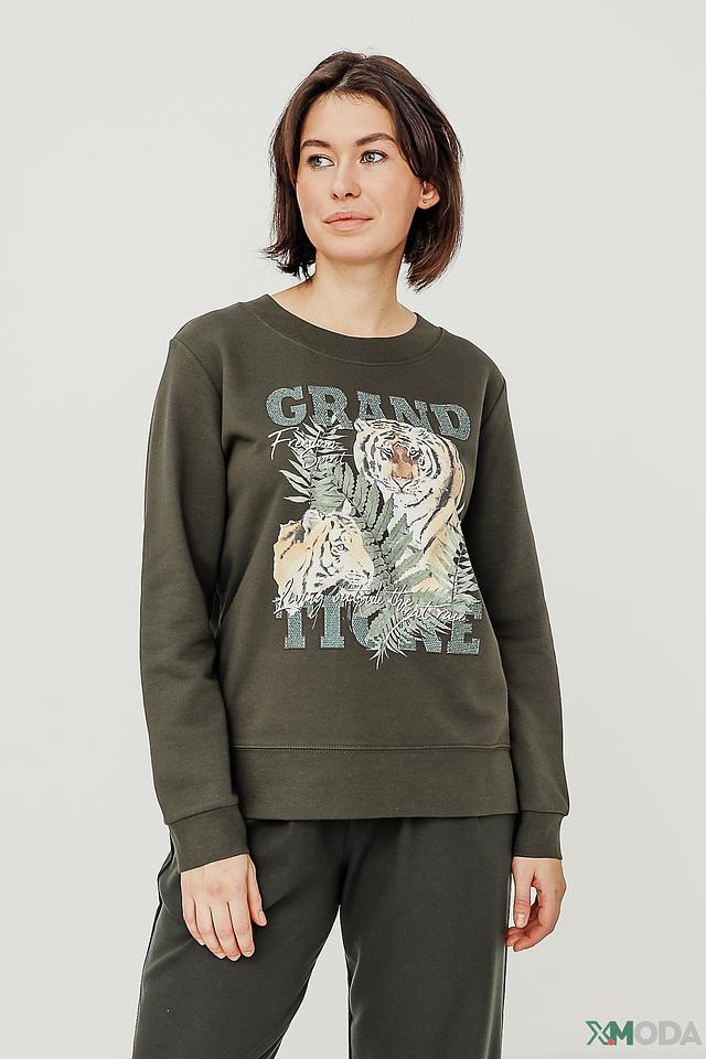 Женская толстовка Margittes хаки цвета с ярким принтом тигра – стильное и комфортное решение для повседневного образа. Изготовлена из мягкого хлопка с добавлением полиэстера, обеспечивающего износостойкость и сохранение формы. Состав: хлопок 83%, полиэстер 17%