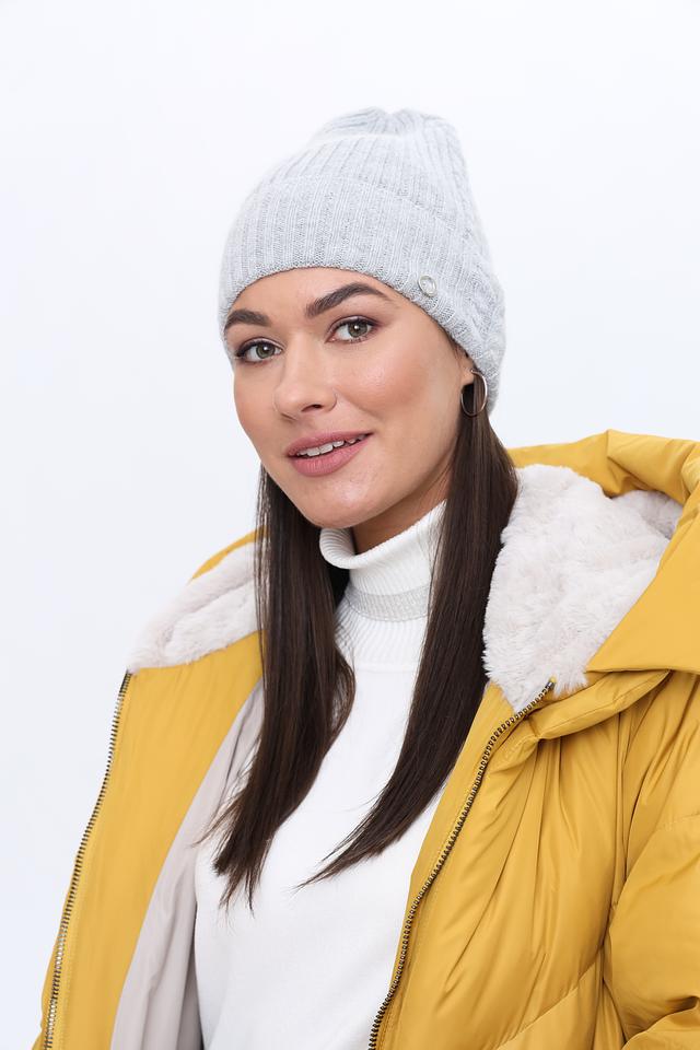 Шапка имеет классическую форму и нейтральный серый цвет, который легко сочетается с любой одеждой. Фактурный вязаный узор добавляет шапке изысканности и стиля. Небольшая декоративная подвеска придает шапке индивидуальность.