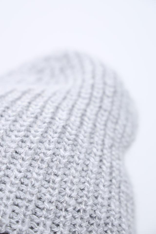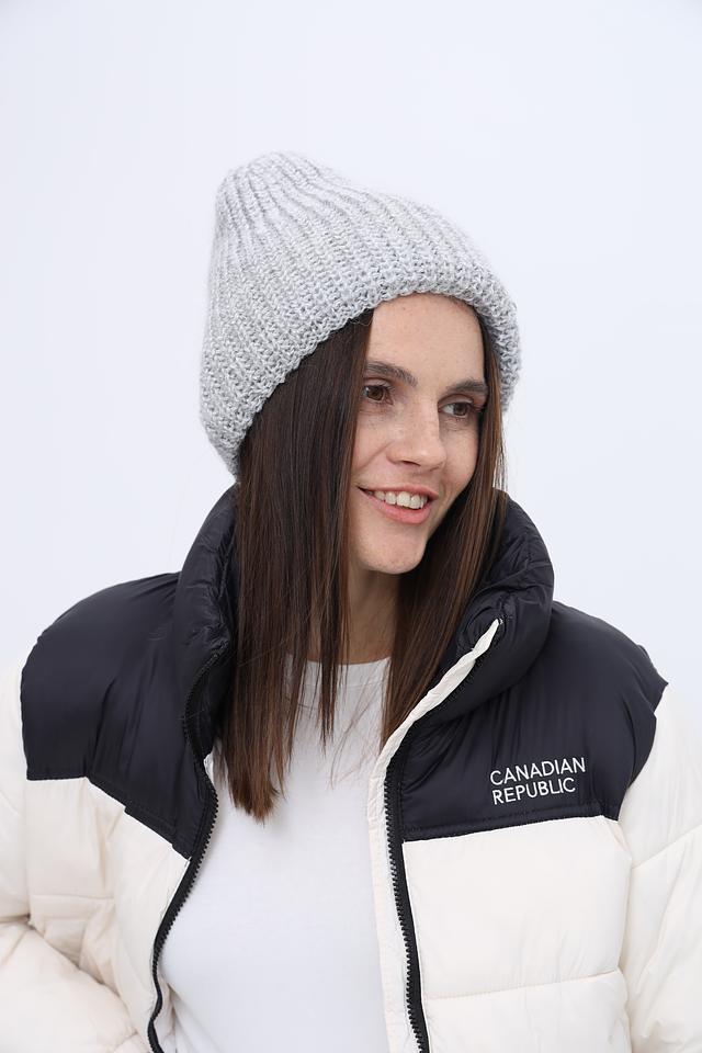 Шапка имеет классический дизайн и нейтральный серый цвет, который легко сочетается с любой одеждой. Текстурное вязаное полотно придает шапке объем и уютный вид. Она плотно прилегает к голове, защищая от ветра и холода.