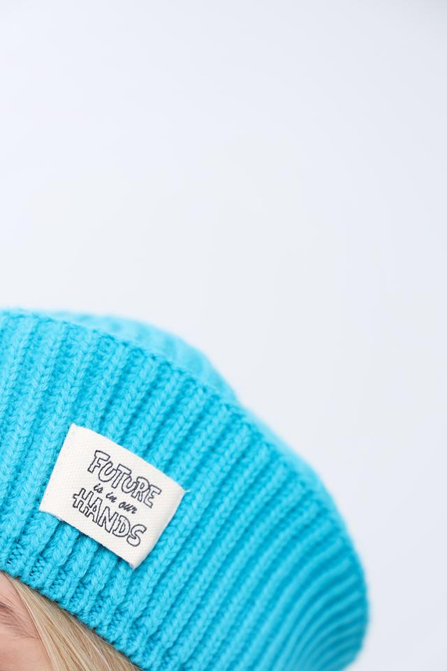 На передней части берета расположена аккуратная нашивка с надписью "FUTURE IS IN OUR HANDS", добавляющая оригинальности. Берет идеально подходит для создания модных и стильных образов в повседневной жизни.