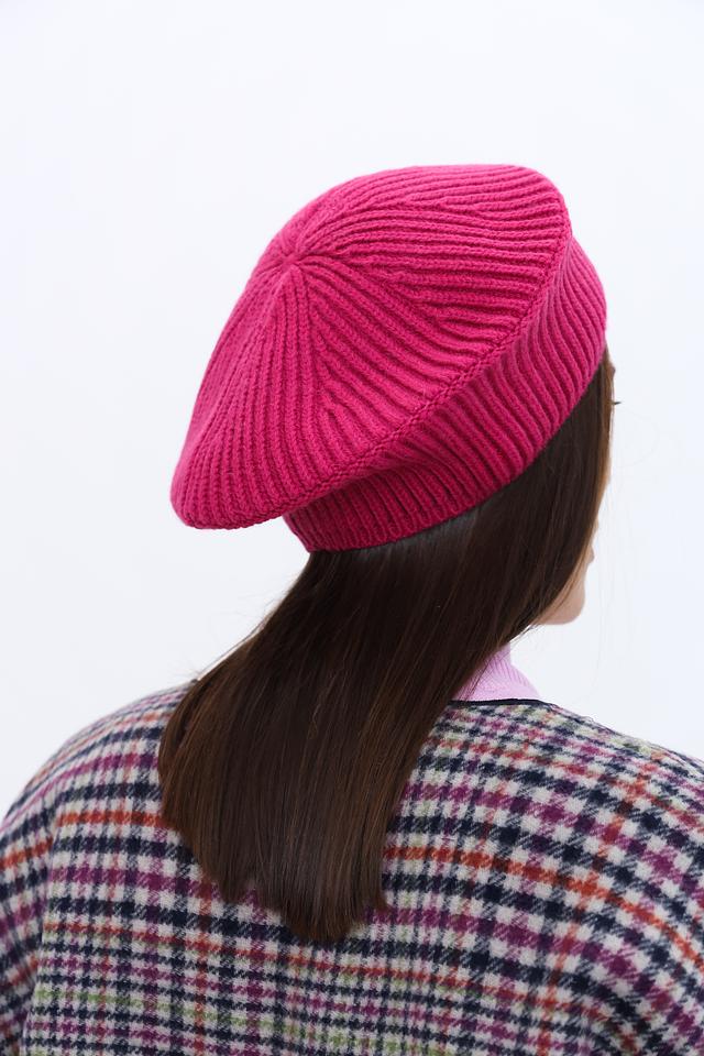 Берет имеет классическую форму и плотную вязку, благодаря чему хорошо держит форму и не деформируется. Яркий фуксиевый цвет добавит образу женственности и индивидуальности.