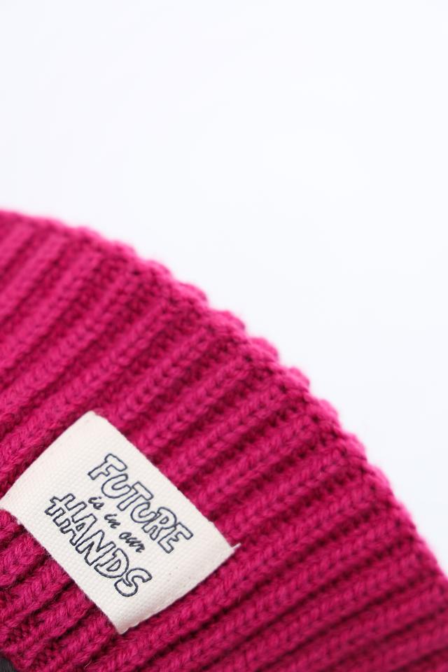 На левой стороне берета расположена небольшая тканевая бирка с надписью "FUTURE is in our HANDS". Берет идеально сочетается с пальто, куртками и другой верхней одеждой. Состав: 70% акрил, 30% шерсть.