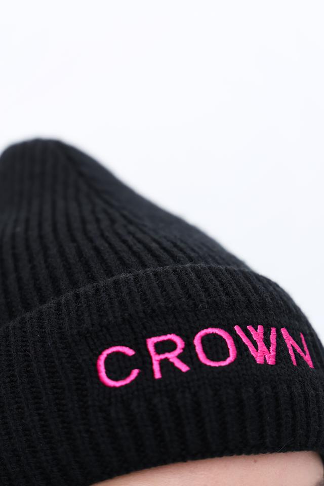 Эта шапка от Marhatter станет отличным дополнением к вашему зимнему гардеробу. Классический чёрный цвет и лаконичный дизайн с вышивкой "CROWN" делают её универсальной и подходящей к различным стилям одежды.