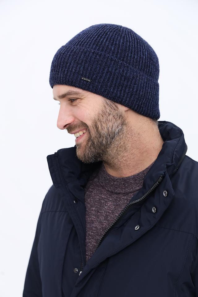 Шапка имеет классический дизайн и плотно прилегает к голове, защищая от ветра и мороза. Синий цвет модели универсален и легко сочетается с различной верхней одеждой.