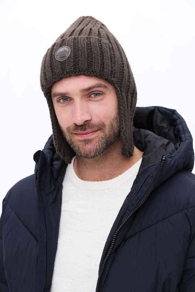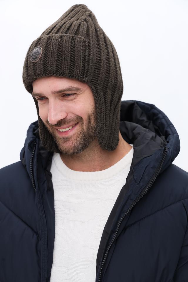 Мужская шапка Marhatter коричневого цвета с отворотами и декоративным элементом. Изготовлена из сочетания шерсти, акрила и альпаки для комфорта и тепла. Идеальный выбор для холодной погоды. Состав: шерсть 50%, акрил 40%, альпака 10%