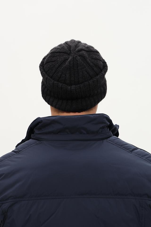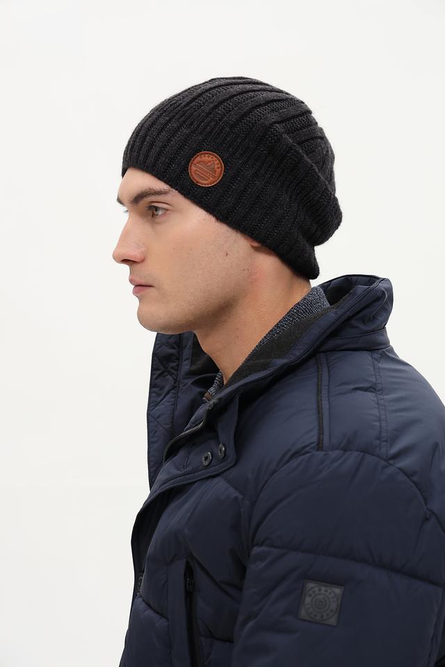 Шапка имеет классический дизайн и плотную вязку, благодаря чему хорошо держит форму и защищает от ветра и холода. Цвет шапки – насыщенный чёрный, что делает её универсальной и подходящей к любому образу.