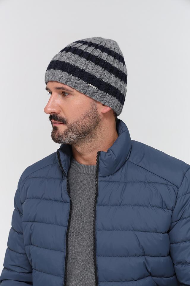 Стильная мужская шапка Marhatter серого цвета с полосатым узором. Изготовлена из сочетания акрила, альпаки и шерсти для комфорта и тепла. Идеальный выбор для холодной погоды. Состав: акрил 45%, альпака 37%, шерсть 18%
