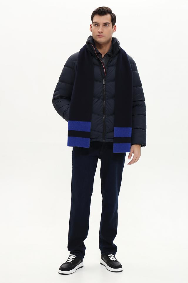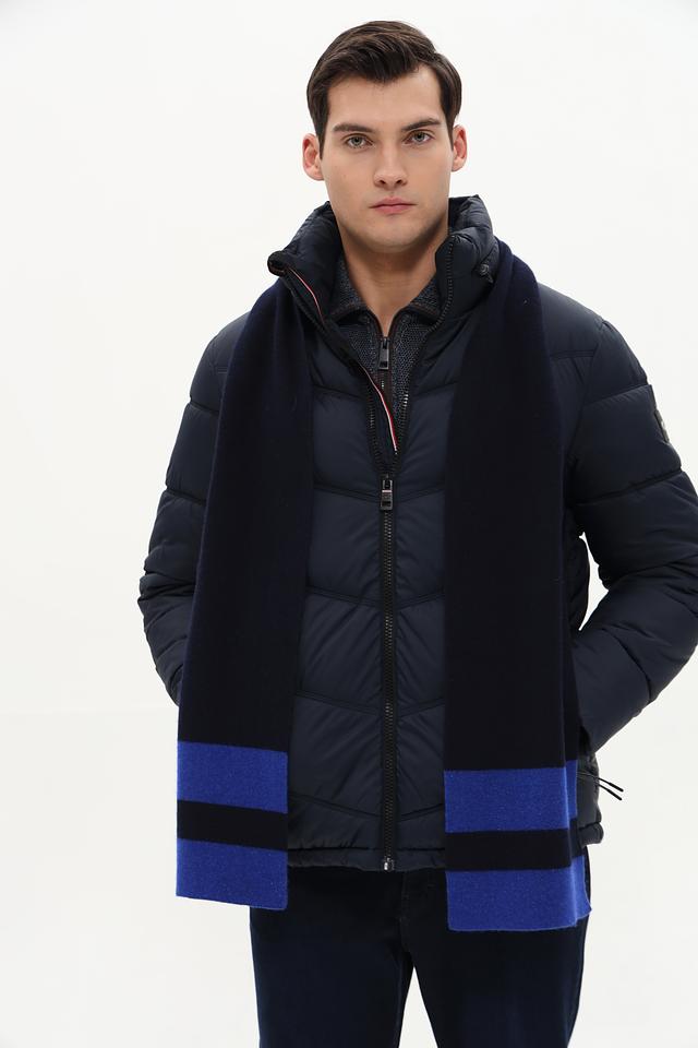 Шарф Marhatter синего цвета с контрастной полоской – стильный и практичный аксессуар для мужчин. Изготовлен из высококачественного сочетания шерсти, вискозы и полиамида, обеспечивающего тепло и комфорт. Состав: полиамид 35%, шерсть 30%, вискоза 26%, кашемир 6%, шелк 3%