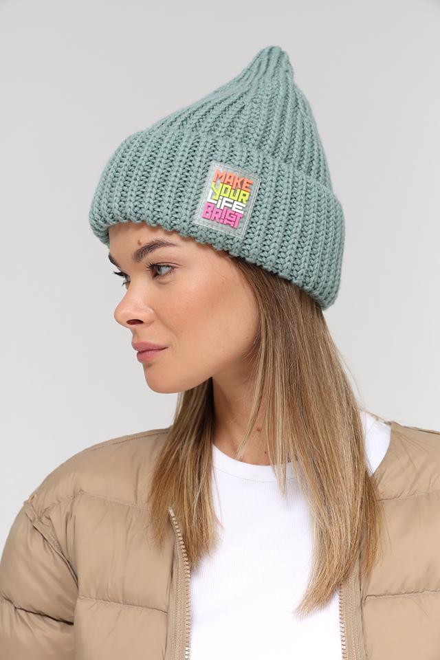 Вязаная текстура шапки не только стильно выглядит, но и обеспечивает дополнительное тепло в холодную погоду. На шапке расположен яркий цветной принт с надписью, который добавляет ей индивидуальности.
