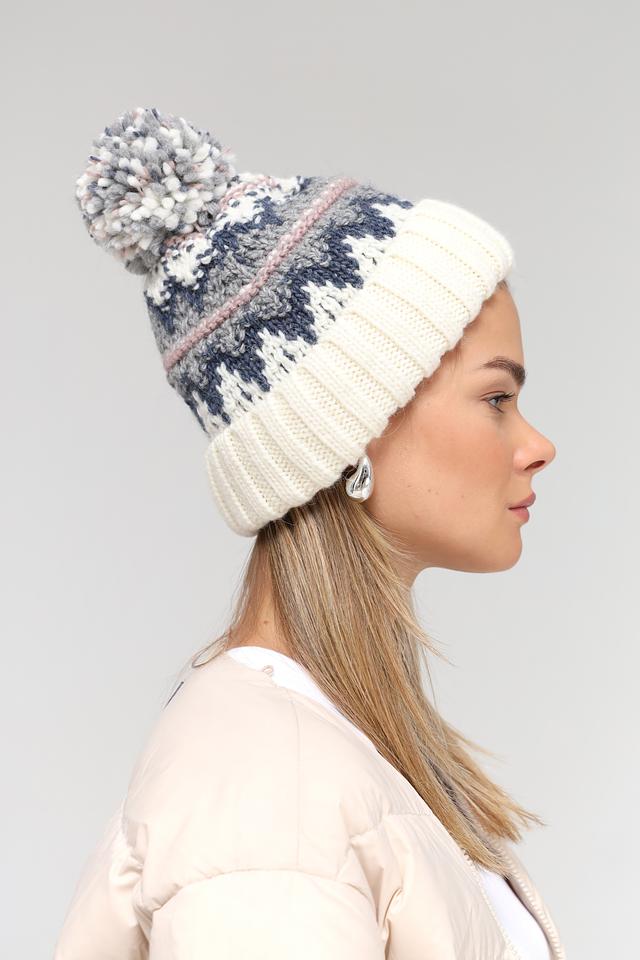 Белая шапка от Marhatter с узором и помпоном – стильный и тёплый аксессуар для зимнего сезона. Изготовлена из мягкой шерсти с добавлением акрила и альпаки для комфорта и долговечности. Состав: шерсть 50%, акрил 40%, альпака 10%