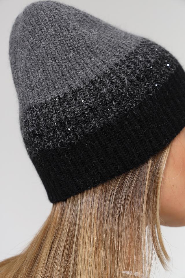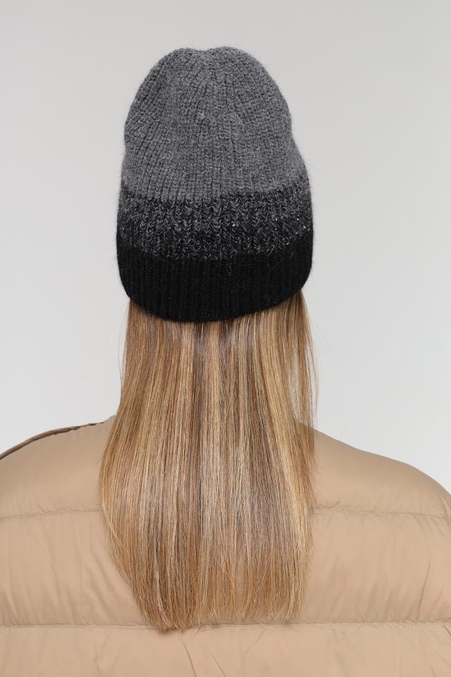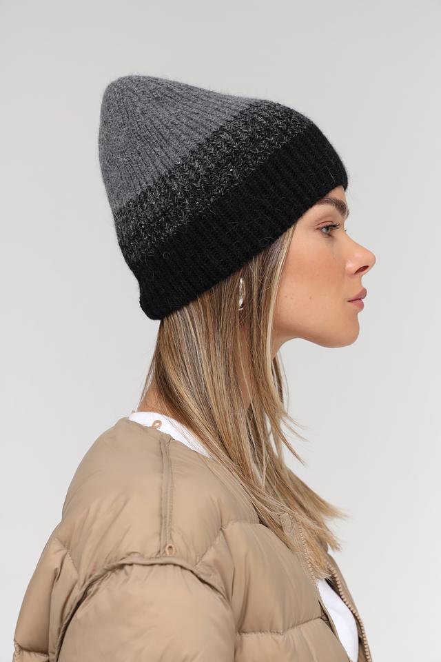 Эта шапка от Marhatter станет отличным дополнением к вашему зимнему гардеробу. Она выполнена в актуальном дизайне омбре, сочетающем чёрный и серый цвета, создавая эффектный градиентный переход.
