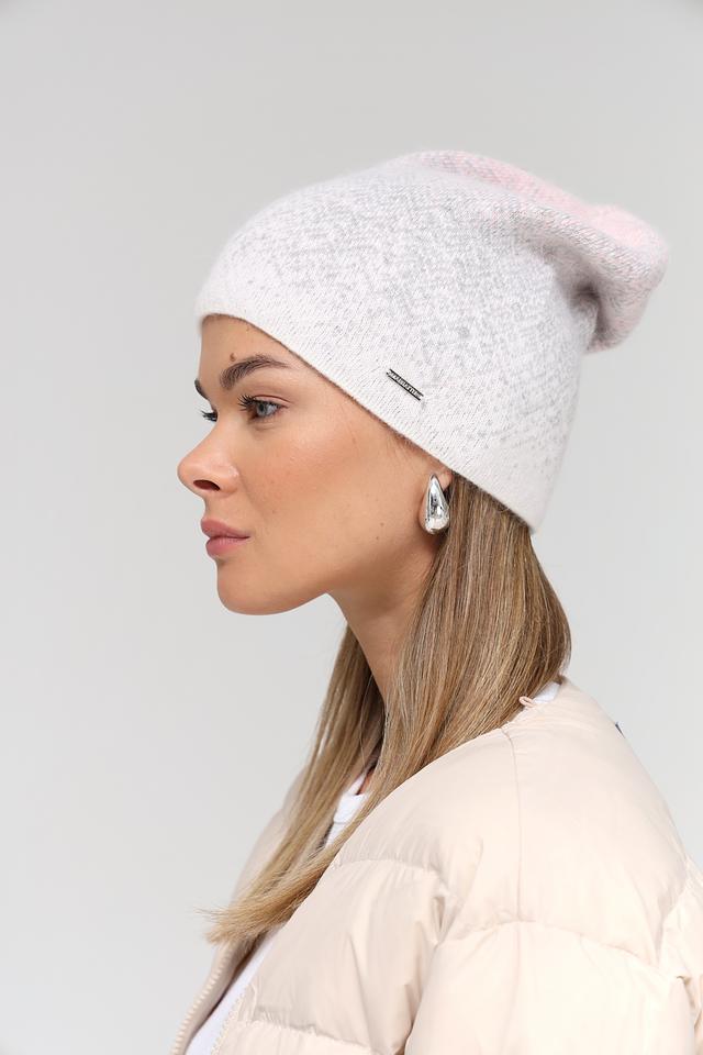 Шапка имеет свободный крой, который позволяет ей удобно сидеть на голове, не сдавливая ее. Нежный пудровый цвет легко сочетается с различными оттенками одежды, создавая стильный и женственный образ.