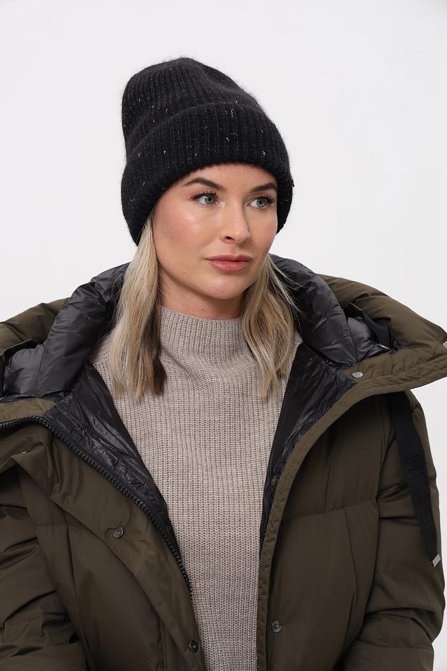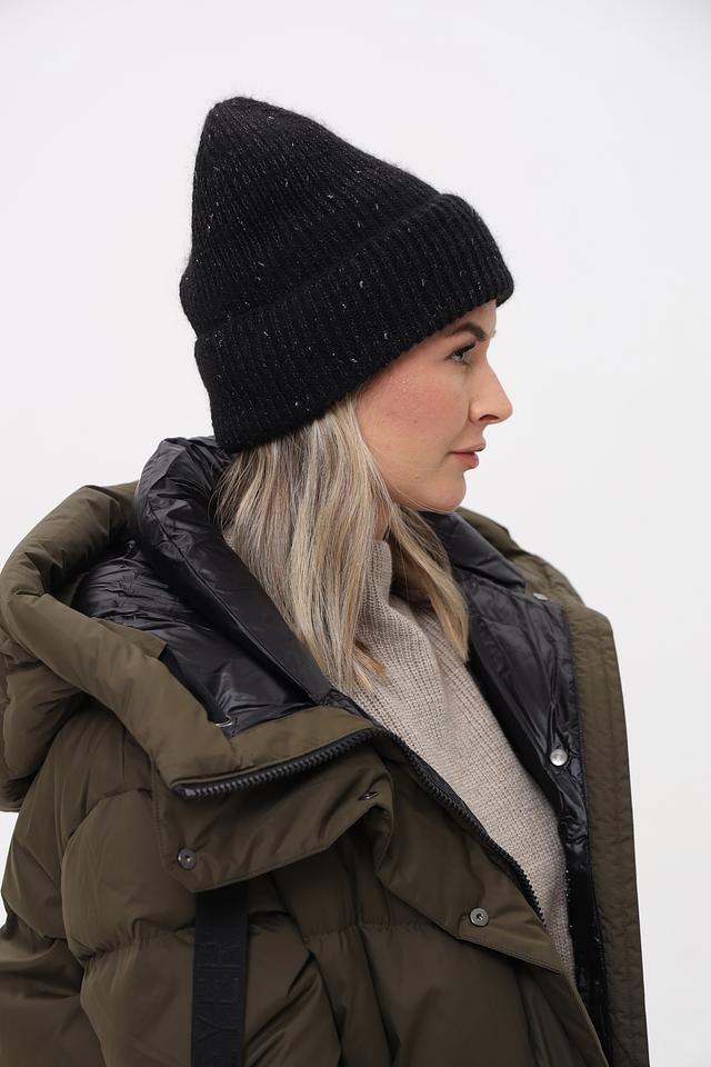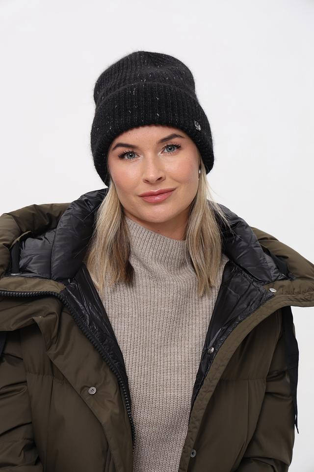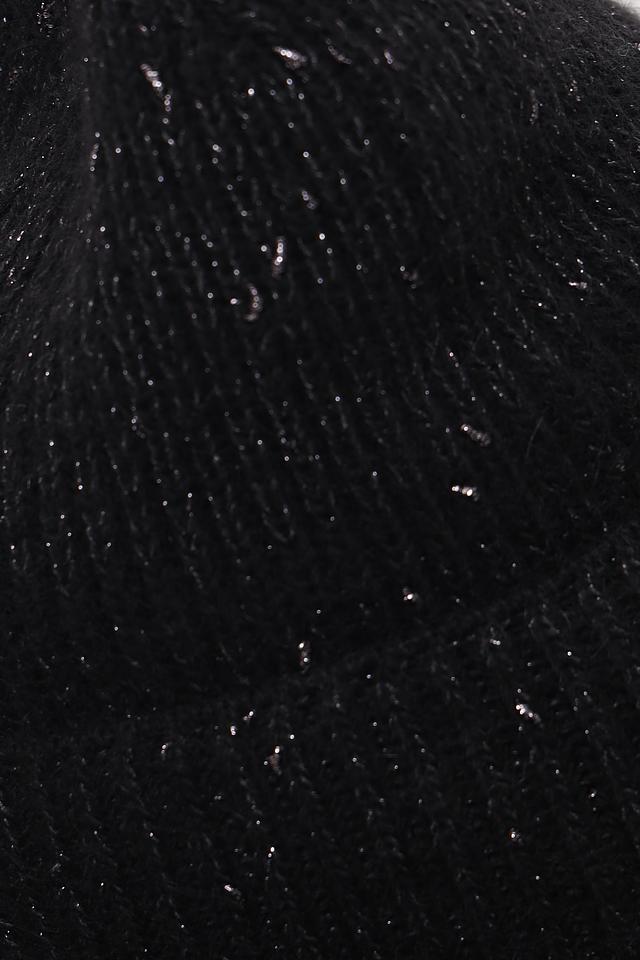 Чёрный цвет шапки универсален и легко сочетается с любой одеждой. Деликатные блестки добавляют шапке изысканности и делают её подходящей для особых случаев. Шапка имеет классическую форму и плотно прилегает к голове, защищая от ветра и холода.