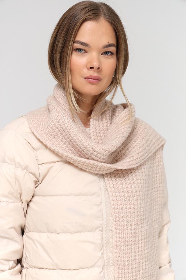 Шарф имеет прямоугольную форму и выполнен крупной вязкой, что придает ему объем и фактурность. Бежевый цвет делает его универсальным и легко сочетаемым с различными стилями одежды.