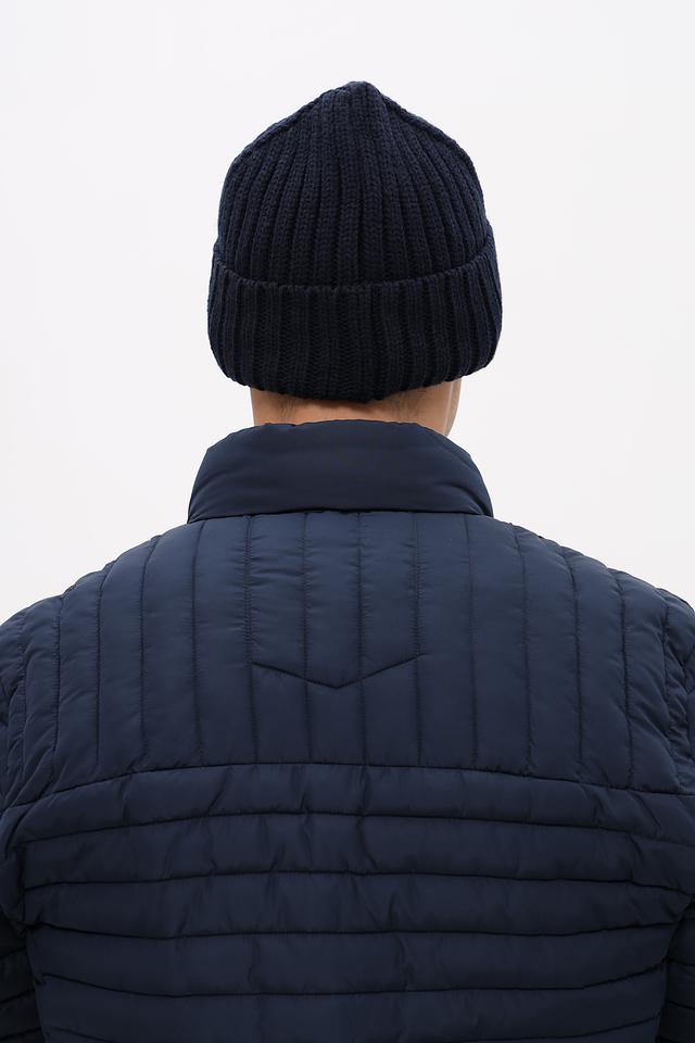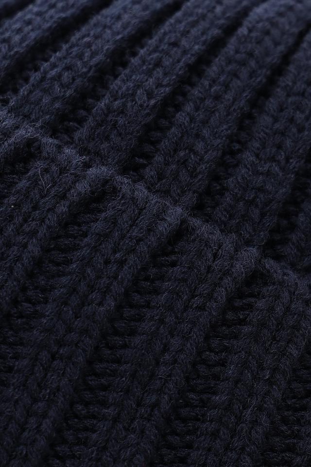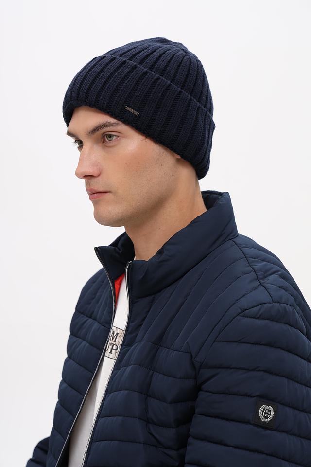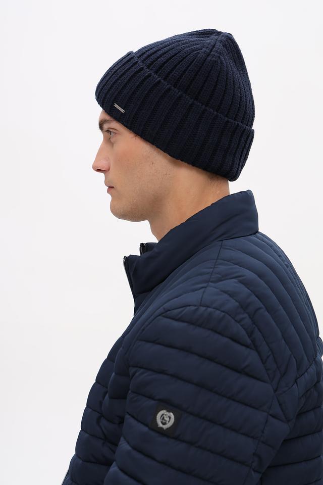 Шапка имеет классическую вязаную текстуру и лаконичный дизайн, который легко сочетается с различной верхней одеждой. Темно-синий цвет делает ее универсальной и подходящей для большинства цветовых схем гардероба.