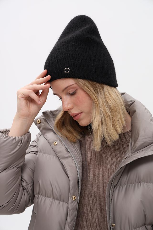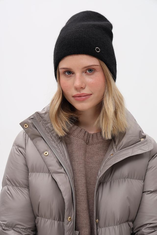 Чёрная шапка от Marhatter – это стильный и практичный аксессуар для холодного времени года. Модель выполнена из мягкого трикотажа с добавлением ангоры, что обеспечивает комфорт и тепло. Декорирована металлическим логотипом бренда. Состав: полиамид 50%, вискоза 30%, ангора 20%