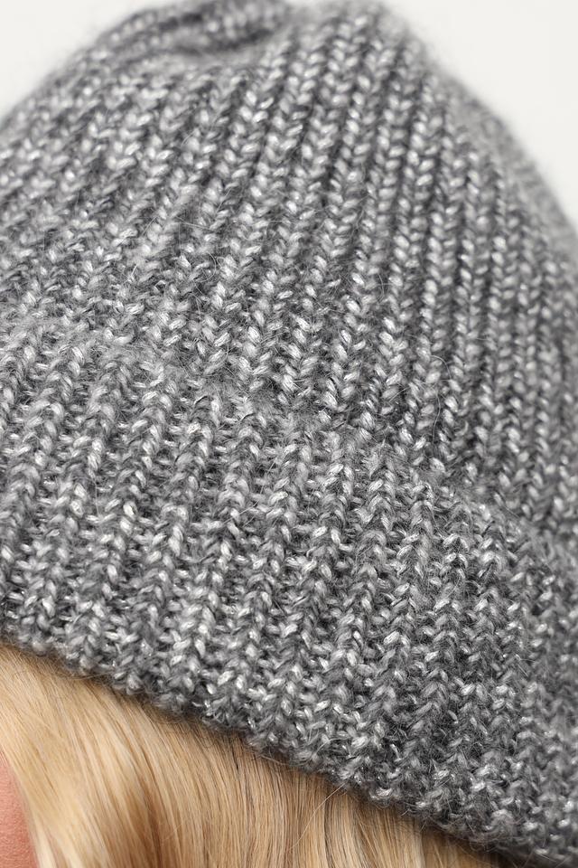 Шапка имеет лаконичную форму, плотно прилегающую к голове. В составе изделия присутствует мохер, что обеспечивает мягкость, легкость и тепло. Помимо мохера, в состав входят полиамид, акрил, вискоза и металлизированная нить, благодаря чему шапка хорошо держит форму и имеет деликатный блеск.