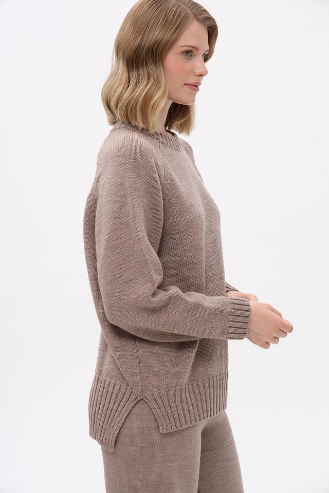Джемпер имеет свободный крой, который не сковывает движений и позволяет создать расслабленный силуэт. Оригинальные разрезы по бокам добавляют модели интересные детали и делают ее более современной.