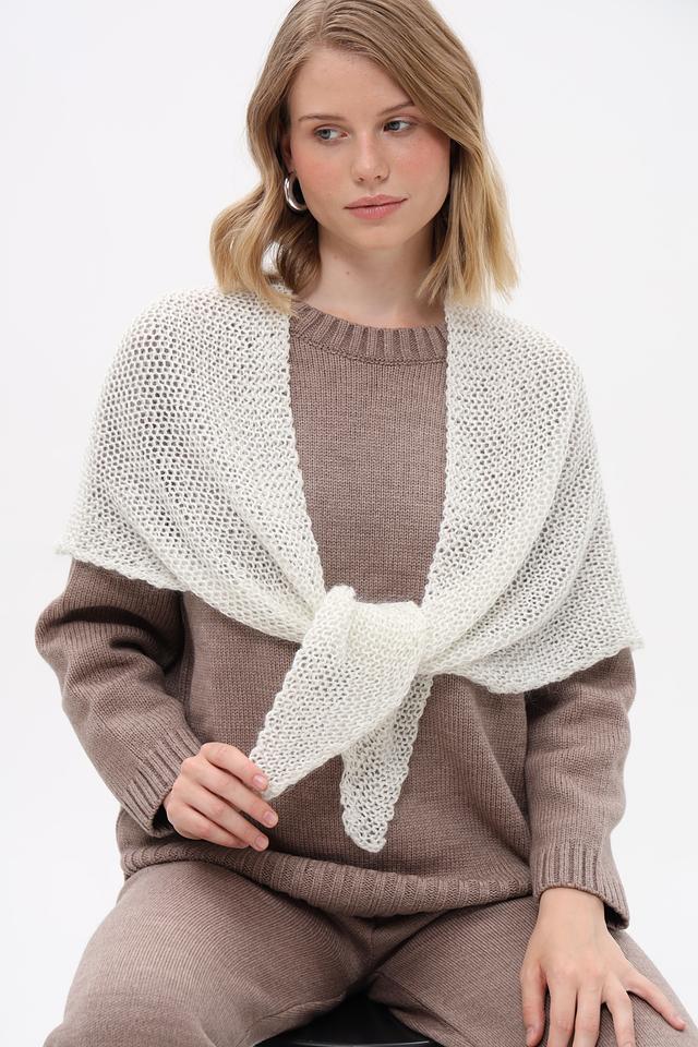 Косынка Marhatter молочного цвета — стильный и универсальный аксессуар. Изготовлена из мягкого сочетания полиакрила, мохера и металлизированной нити, что придает ей лёгкий блеск и приятную текстуру. Идеально дополнит ваш повседневный или вечерний образ. Состав: полиакрил 69%, мохер 28%, метализ.нить 3%