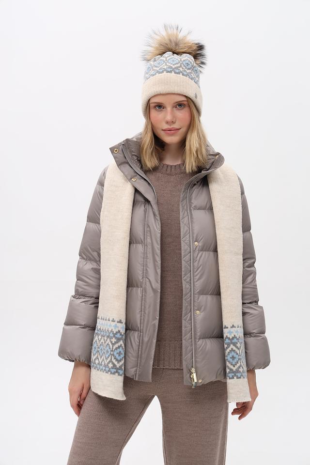 Этот шарф от Marhatter – идеальный аксессуар для создания уютного и стильного образа. Шарф выполнен в серой цветовой гамме и украшен оригинальным геометрическим узором, выполненным в сочетании голубого, бежевого и белого цветов.