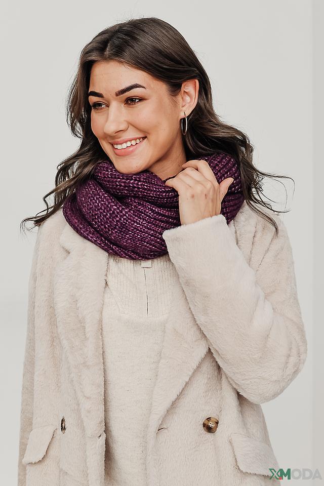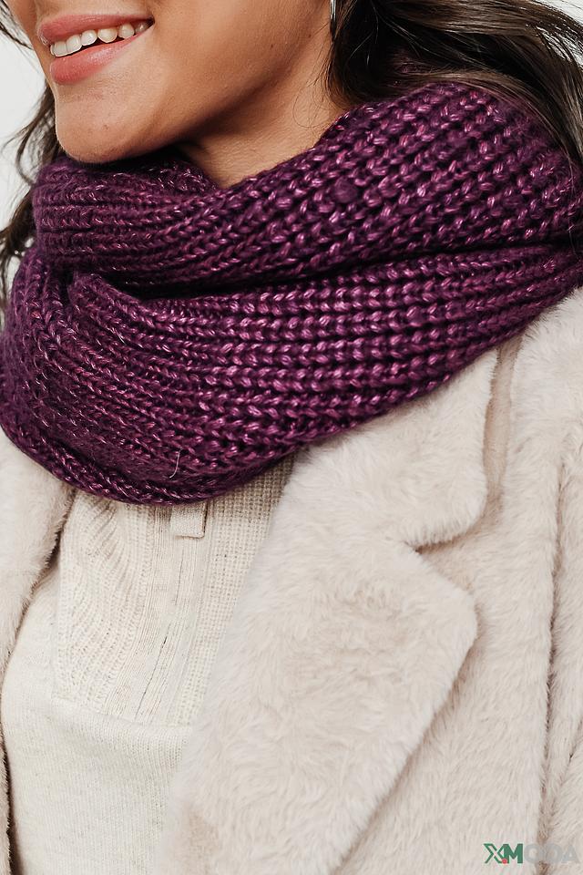 Шарф Marhatter – это стильный и тёплый аксессуар баклажанового цвета, выполненный крупной вязкой. Модель имеет форму снуда, что обеспечивает комфортное ношение и защиту от холода. Сочетает в себе вискозу, акрил, шерсть и мохер. Состав: вискоза 40%, акрил 35%, шерсть 15%, мохер 10%