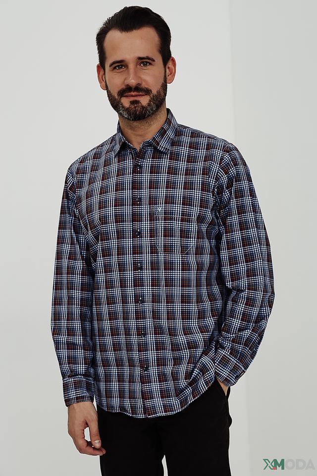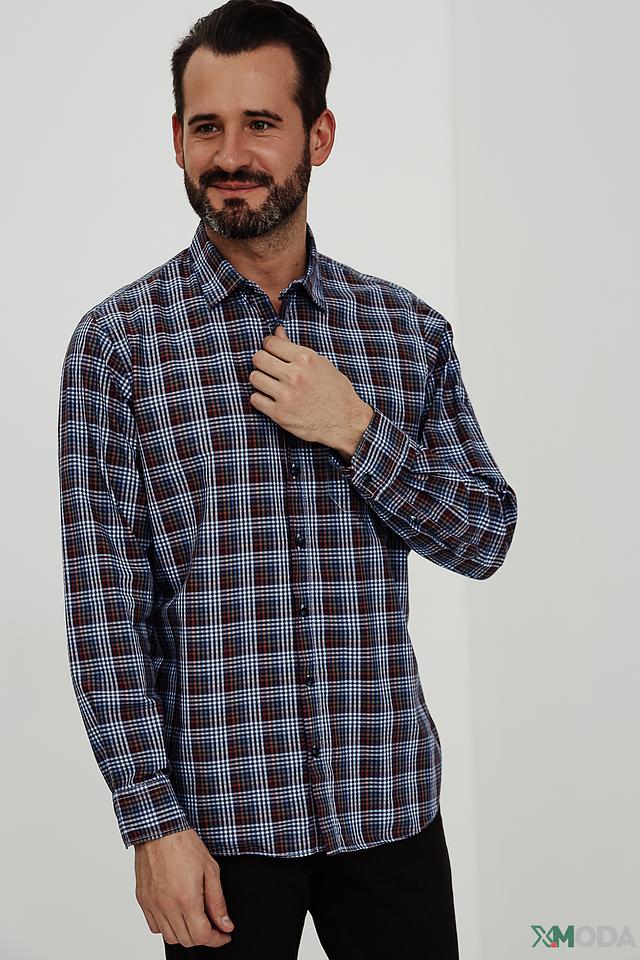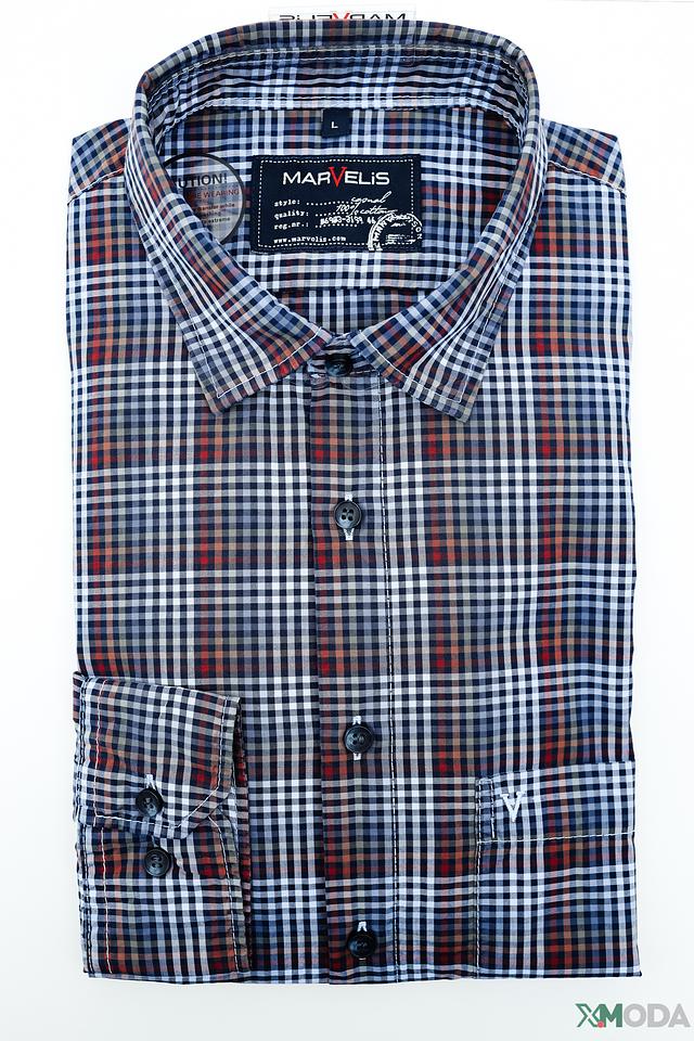 Мужская рубашка Marvelis синего цвета в классическую клетку – это стильное и универсальное решение для создания повседневного образа. Изготовлена из 100% хлопка, обеспечивающего комфорт и воздухопроницаемость. Состав: хлопок 100%