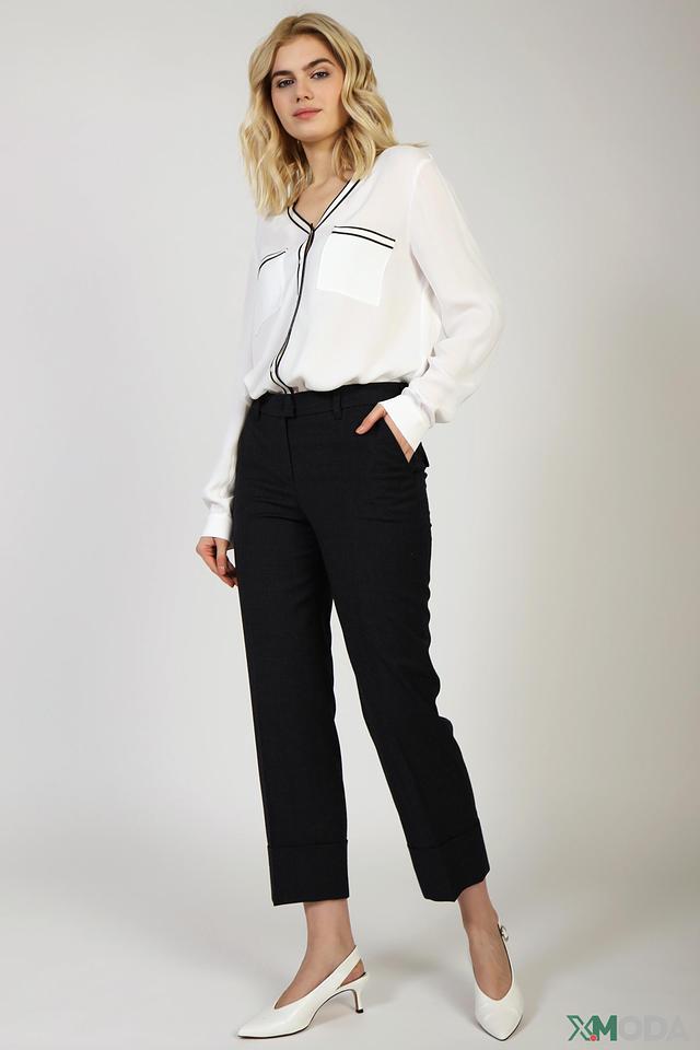Брюки имеют прямой крой, который подчеркивает фигуру и подходит для создания различных образов. Застежка на молнию и пуговицу обеспечивает надежную фиксацию. Стандартная посадка делает брюки универсальными для разных типов фигуры.