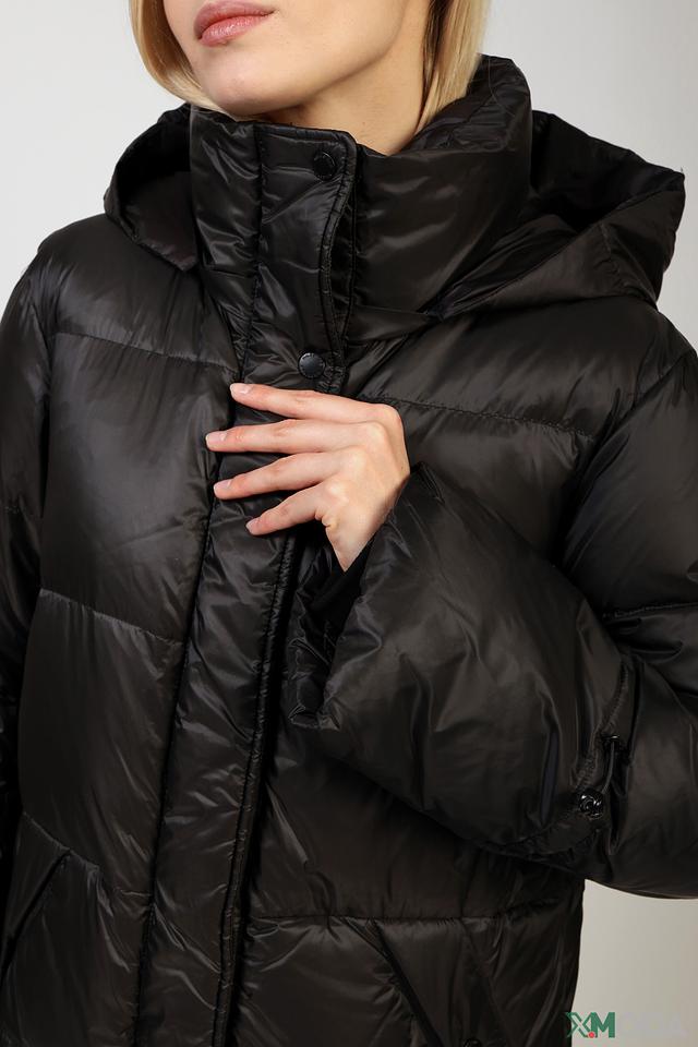 Это пальто от Milestone выполнено в классическом чёрном цвете и имеет стеганую фактуру. Пальто отличается удлиненным силуэтом и капюшоном, что обеспечивает дополнительную защиту от непогоды.