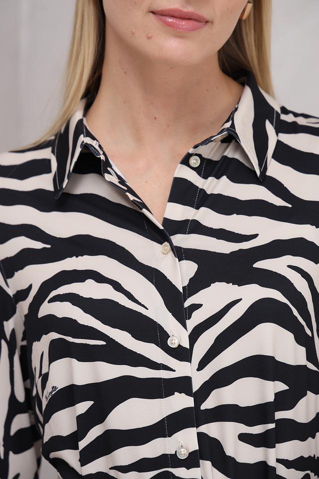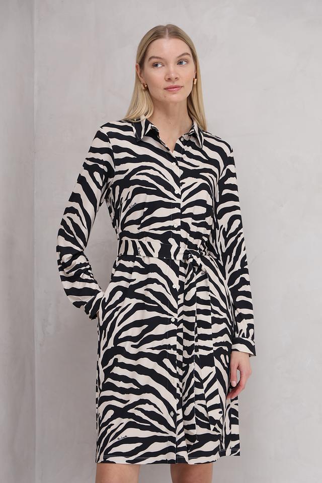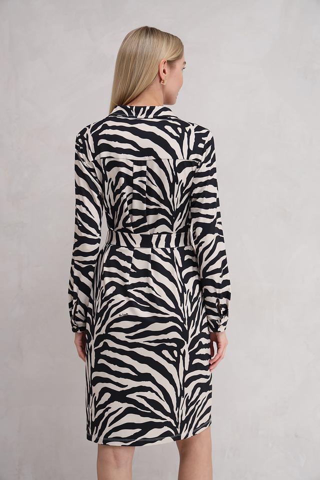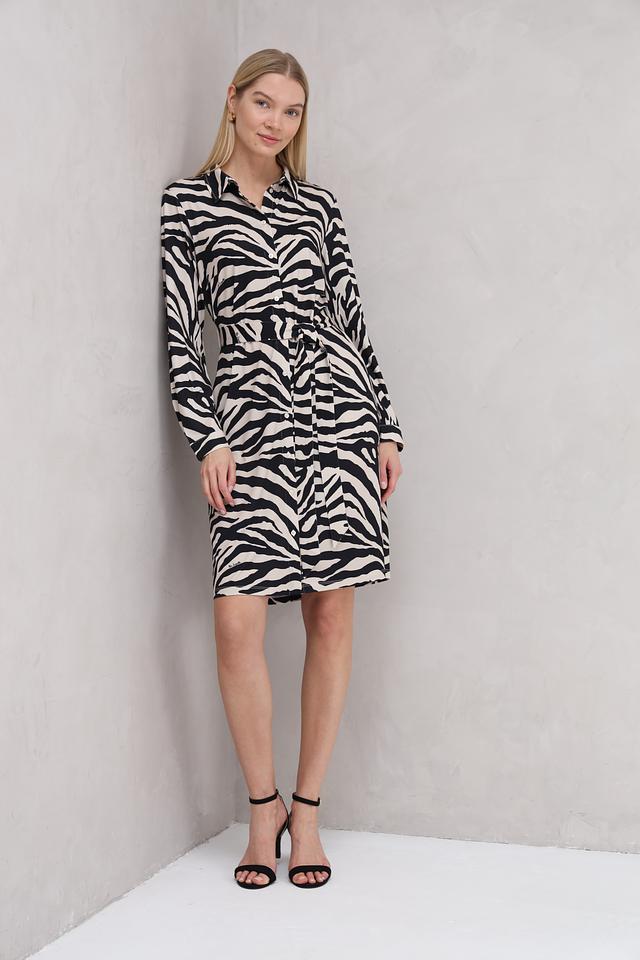 Платье Miss Lagotte чёрно-белого цвета – стильная модель с принтом "зебра", длинным рукавом и приталенным силуэтом. Застёжка на пуговицах и пояс в комплекте позволяют регулировать посадку и создавать разные образы. Состав: полиэстер 92%, эластан 8%
