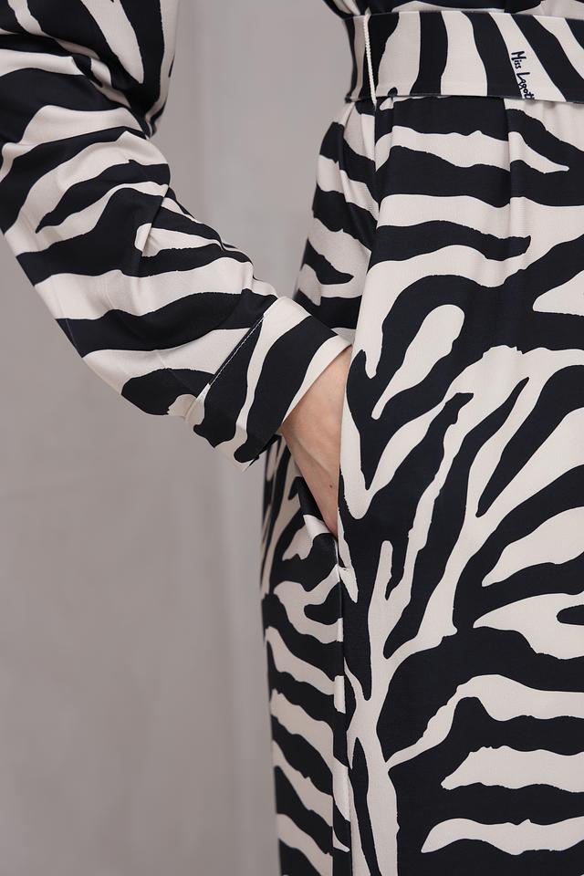 Это платье от Miss Lagotte выполнено в эффектном чёрно-белом принте "зебра", который делает его ярким и запоминающимся. Модель имеет приталенный силуэт, который подчеркивает фигуру, и длину до колена.