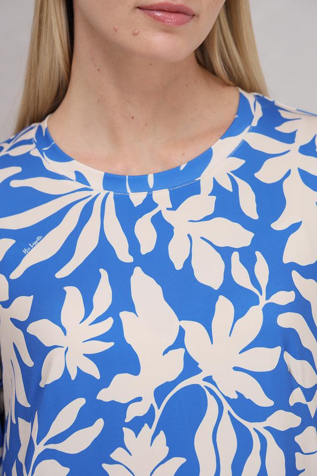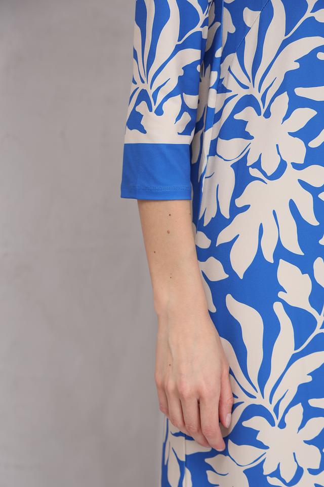 Платье Miss Lagotte синего цвета с ярким цветочным принтом – отличный выбор для создания стильного и комфортного образа. Модель имеет длину до колена и рукава 3/4, что делает ее универсальной для различных случаев. Состав: полиэстер 92%, эластан 8%