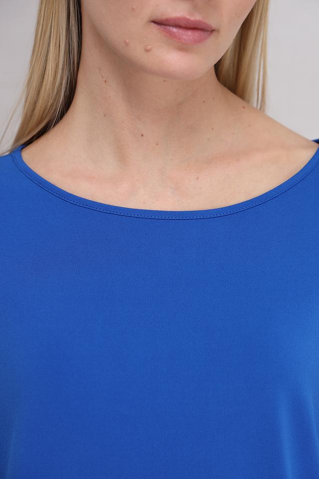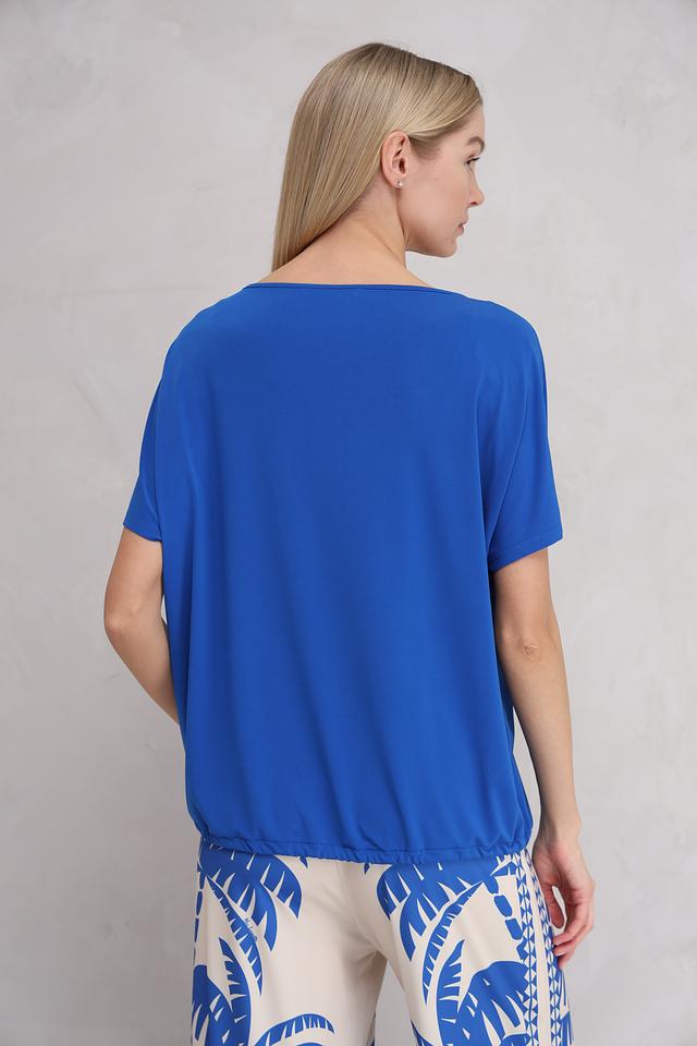 Синяя блуза Miss Lagotte свободного кроя – это стильное и комфортное решение для повседневного образа. Модель выполнена из мягкой ткани с добавлением эластана, что обеспечивает удобную посадку и свободу движений. Блуза имеет округлый вырез горловины и короткие рукава. Состав: полиэстер 92%, эластан 8%