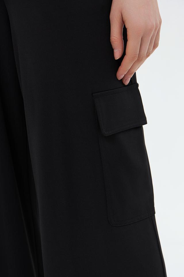 Представляем брюки карго от бренда Miss Lagotte. Эта модель выполнена в классическом чёрном цвете и станет отличным дополнением к вашему гардеробу.
