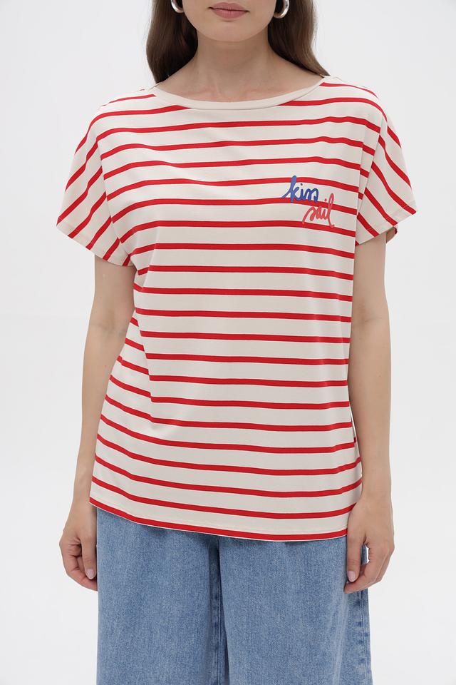 Женская футболка Miss Lagotte – это стильная и удобная модель в классическом исполнении. Футболка выполнена в широкую красную и белую полоску, что придает ей непринужденный и свежий вид.