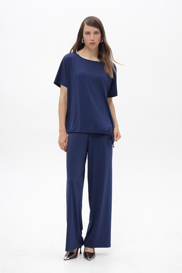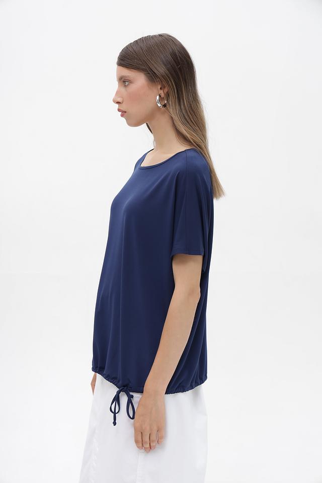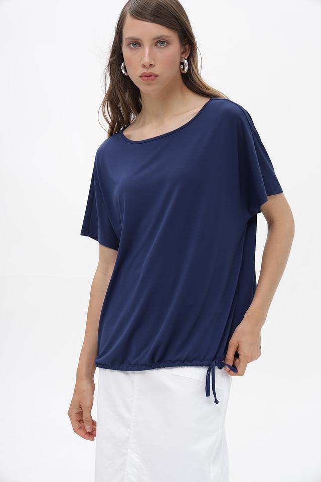 Синяя блуза Miss Lagotte – это стильная и удобная модель из полиэстера с эластаном. Блуза имеет свободный крой, короткие рукава и декоративные завязки по низу, которые позволяют регулировать силуэт. Состав: полиэстер 92%, эластан 8%