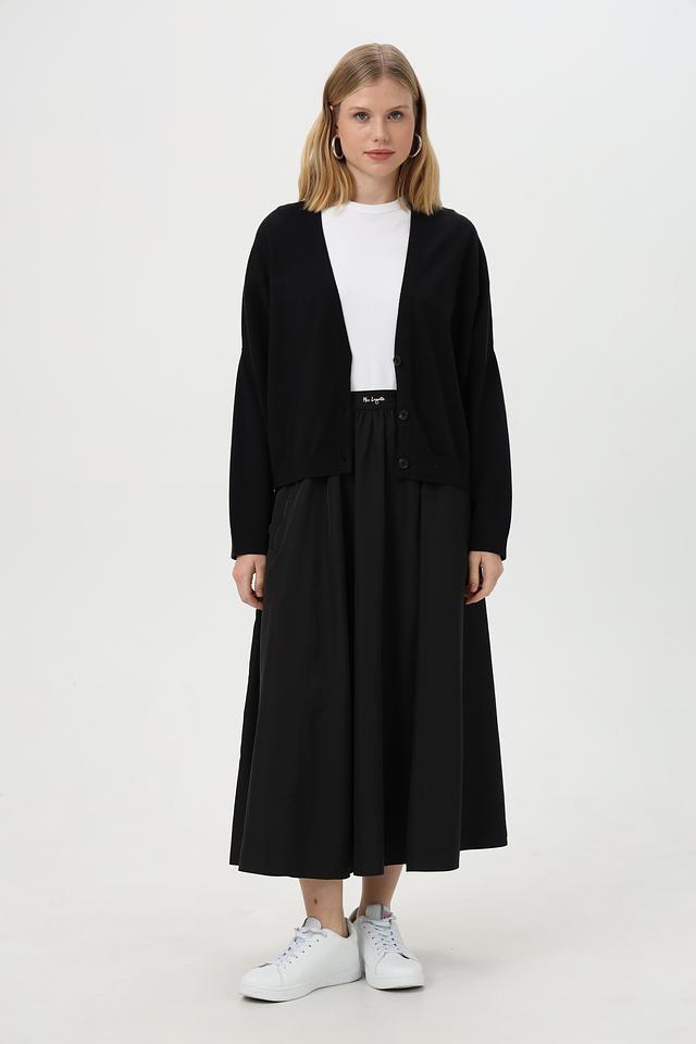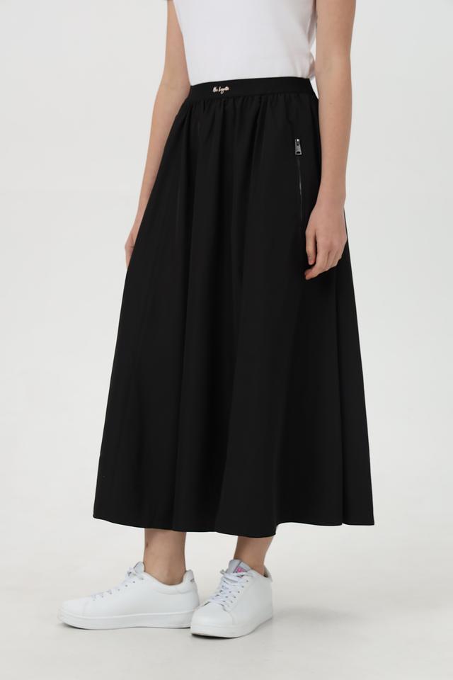 Черная юбка Miss Lagotte длиной миди – это стильное и удобное решение для повседневного образа. Модель выполнена из полиэстера, имеет эластичный пояс и боковые молнии. Комфорт и лаконичный дизайн. Состав: полиэстер 100%