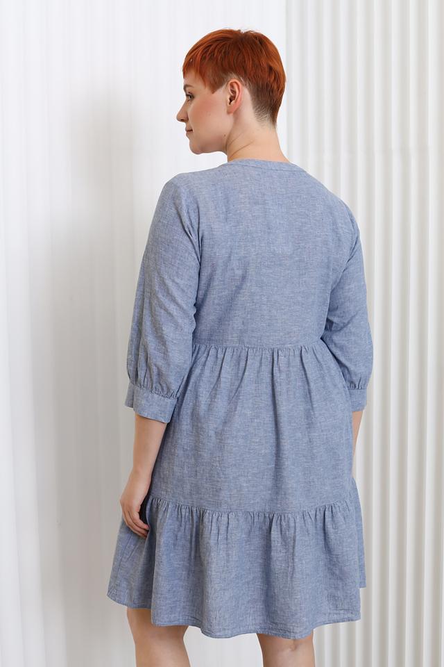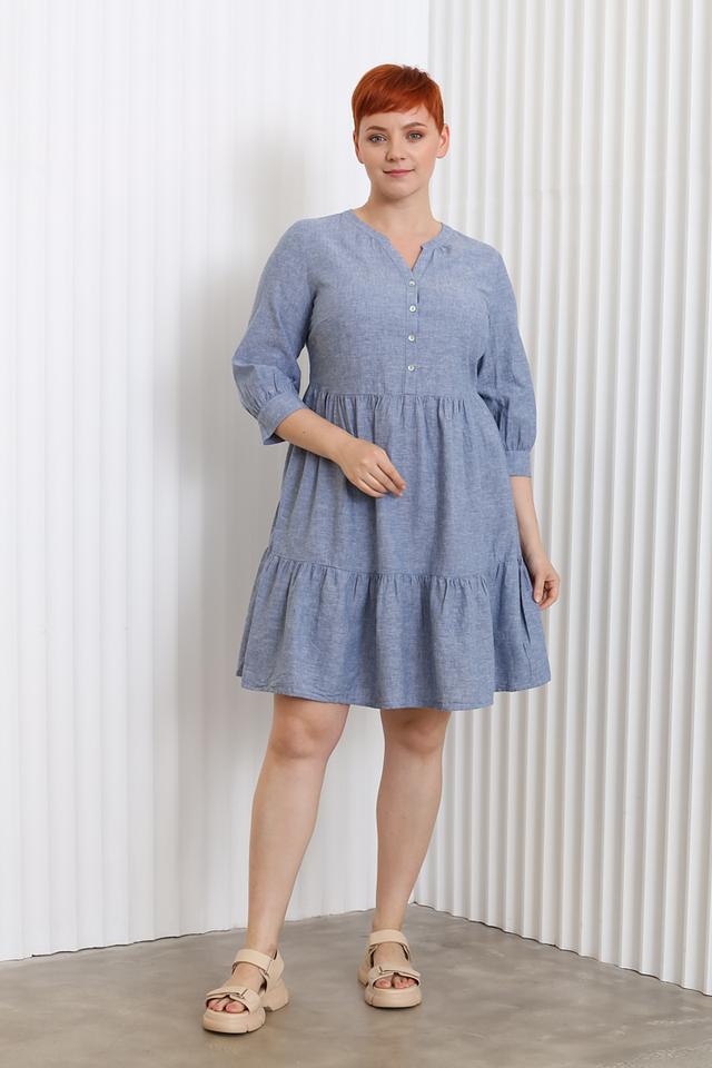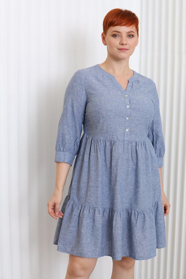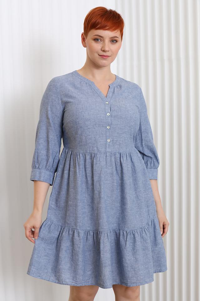 Платье Miss Via голубого цвета – это стильное и комфортное решение для повседневного образа. Модель выполнена из натурального хлопка с добавлением льна, имеет V-образный вырез и рукава 3/4 со сборкой. Платье идеально подойдет для создания легкого и женственного образа. Состав: хлопок 70%, лен 30%