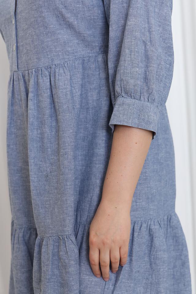 Платье застегивается на ряд пуговиц по переду, что позволяет регулировать степень прилегания. Удобный крой и натуральные материалы делают это платье отличным выбором для повседневной носки.