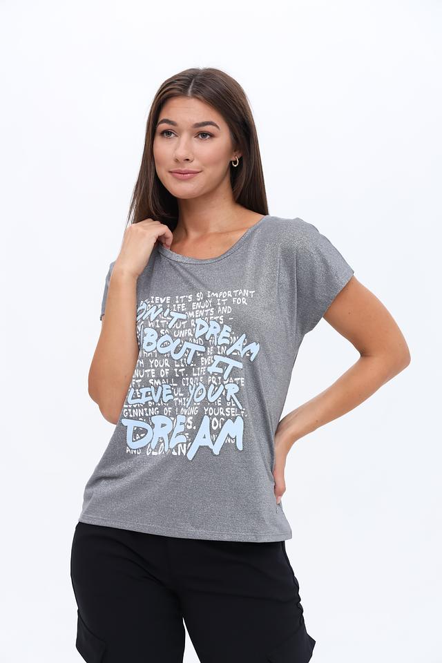 Футболку можно сочетать с джинсами, брюками или юбками, создавая разнообразные образы на каждый день. Она идеально подойдет для активного отдыха, прогулок по городу или встреч с друзьями. Состав: вискоза 77%, метализ.полиэстер 21%, эластан 2%.