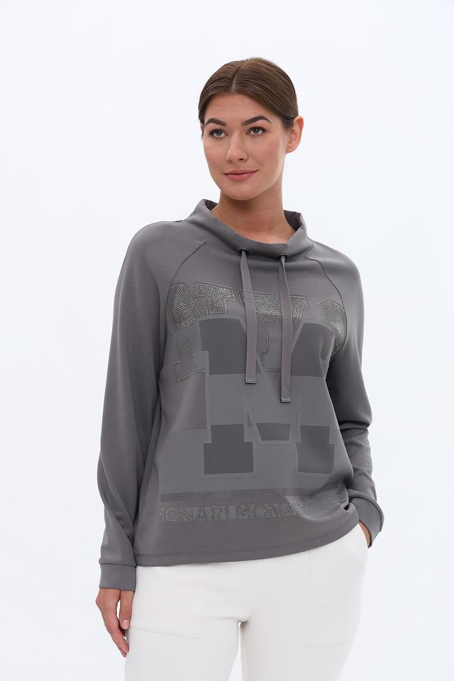 Серый пуловер Monari – это стильная и комфортная модель с оригинальным декором из страз. Удобный капюшон с кулиской и свободный крой делают этот пуловер идеальным выбором для повседневной носки. Состав: полиэстер 55%, вискоза 38%, эластан 7%