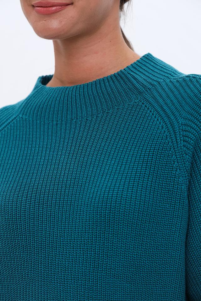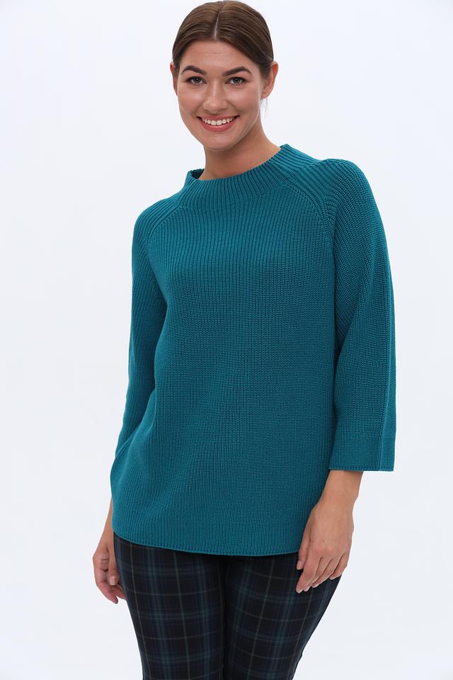Бирюзовый пуловер Monari с рукавом 3/4 и округлым вырезом горловины. Изготовлен из мягкого трикотажа с текстурной вязкой, обеспечивающей комфорт и стильный вид. Идеально сочетается с брюками и юбками. Состав: хлопок 50%, полиакрил 50%